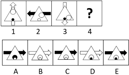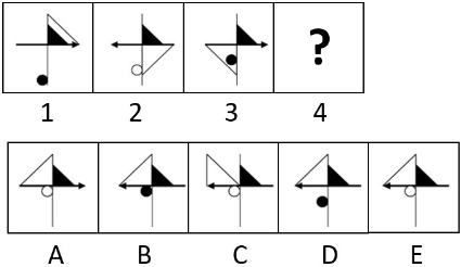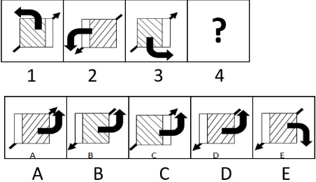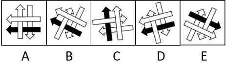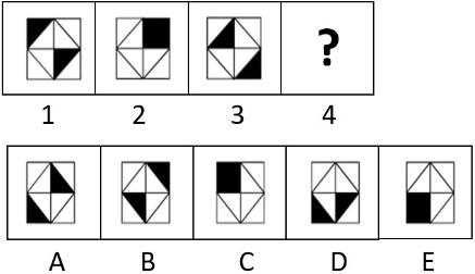 1. Panah berputar 90° berlawanan arah dan warna berubah (putih-hitam-putih-hitam) secara berurut