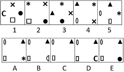 Pembahasan: Pada semua gambar yang lain, jumlah kotak entah satu buah lebih sedikit atau satu buah lebih banyak dibandingkan jumlah simbol di sepanjang tepi