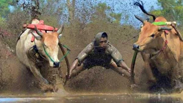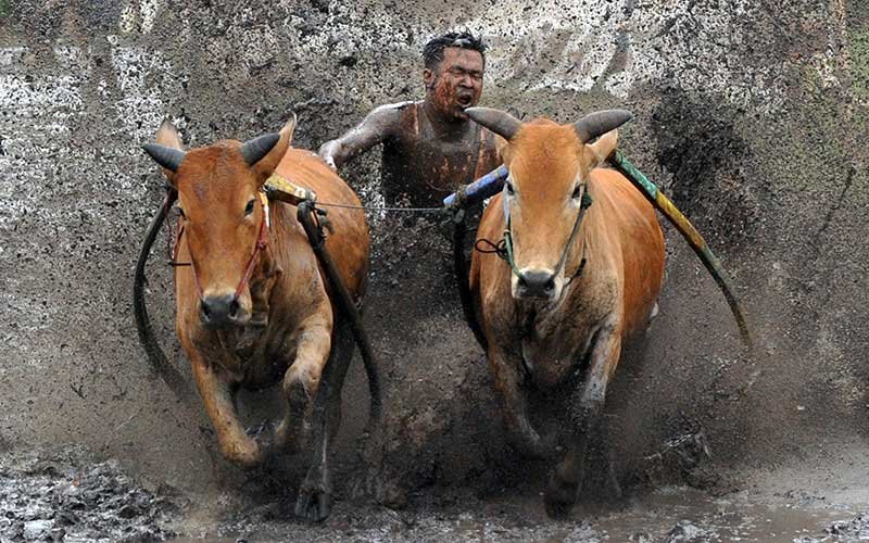 Beberapa sapi ada yang berlari lurus hingga selesai, ada juga yang larinya berbelok dan keluar jalur.